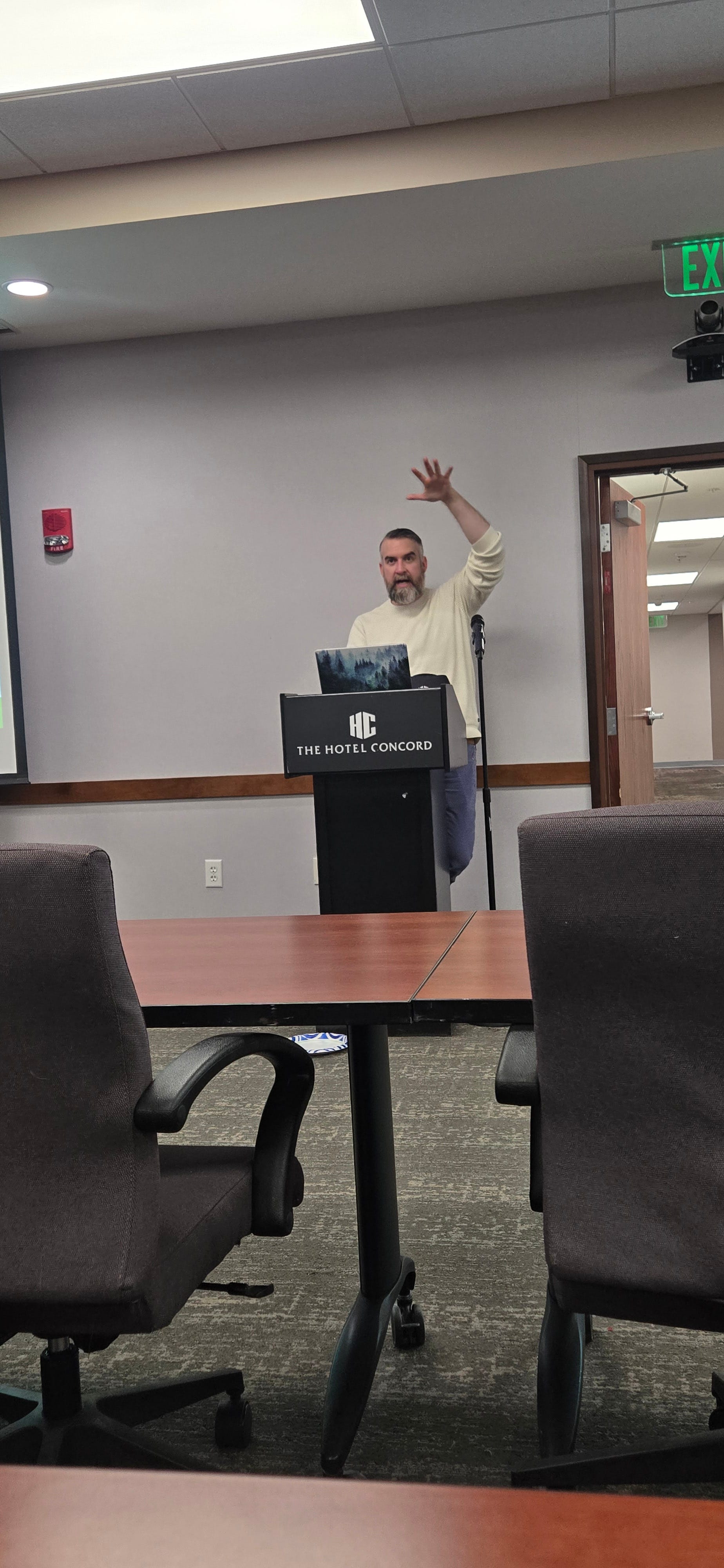 Nick Pope, the organizer, welcomed me, checked me in, and explained the goal of AI in New Hampshire: to make New Hampshire the most AI-literate state in America. A bold ambition, backed by bi-monthly meetings and a full AI week launching this spring.